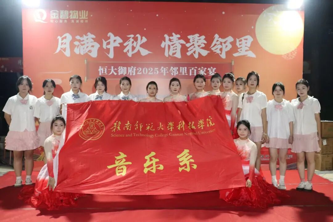 9月26日晚,音乐系数十名师生走进章江街道梅江路社区,参演“月满中秋,情聚邻里”百家宴文艺晚会,与社区居民共庆佳节。